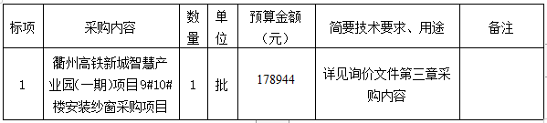 附件:衢州高鐵新城智慧產(chǎn)業(yè)園(一期)項(xiàng)目9#10#樓安裝紗窗采購(gòu)項(xiàng)目詢價(jià)文件