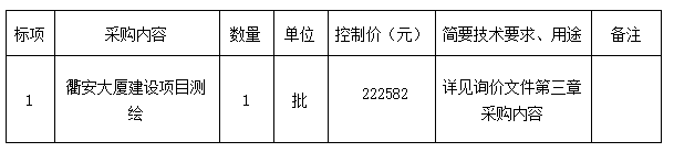 參照《衢州市國資委關于印發(fā)<衢州市國有企業(yè)采購管理辦法(試行)>的通知》(衢國資發(fā)[2020]36號)規(guī)定,衢州市智信工程咨詢有限公司受衢州市信安產業(yè)投資集團有限公司、浙江衢交建設工程有限公司的委托,就衢安大廈建設項目測繪進行詢價,本項目為非依法必招項目,現請合格供應商參加投標。