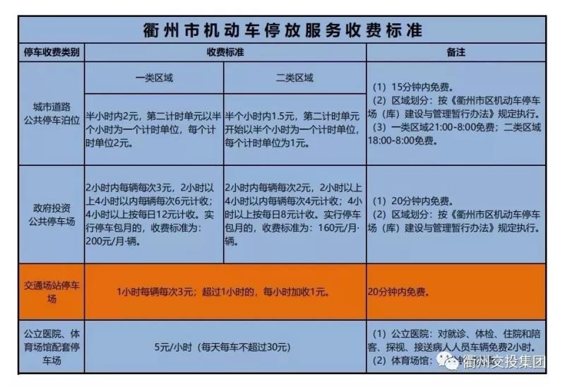 根據(jù)市發(fā)改委于2015年發(fā)布的《關于衢州市區(qū)機動車停放服務收費標準的通知》,綜合客運樞紐地下停車場收費標準,將按照政府定價的市區(qū)機動車停放服務收費四類標準中的“交通場站停車場”類進行收費。