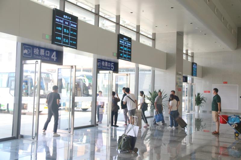 城鄉(xiāng)/城際公交候車大廳位于市綜合客運樞紐地上二層西側(cè),大廳內(nèi)共設(shè)置了6個檢票口,近170個座位可供乘客在候車時休息。