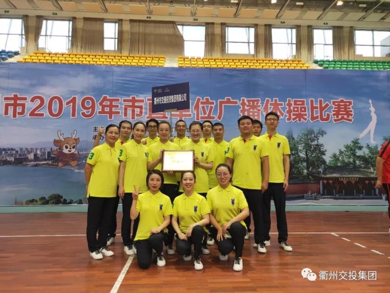 9月29日上午,衢州市2019年市直單位廣播體操比賽在衢州職業(yè)技術(shù)學(xué)院舉行,本次比賽以第九套廣播體操為競(jìng)賽項(xiàng)目,共有來自全市22個(gè)市直單位同場(chǎng)競(jìng)技。經(jīng)過精彩角逐,交投集團(tuán)代表隊(duì)?wèi){借出色發(fā)揮,斬獲一等獎(jiǎng)。