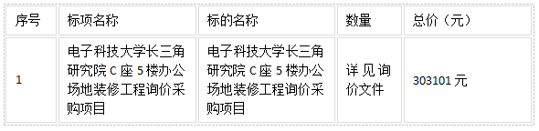 二、項(xiàng)目名稱:電子科技大學(xué)長(zhǎng)三角研究院C座5樓辦公場(chǎng)地裝修工程詢價(jià)采購(gòu)項(xiàng)目