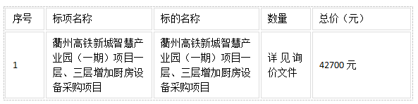二、項目名稱:衢州高鐵新城智慧產(chǎn)業(yè)園(一期)項目一層、三層增加廚房設(shè)備采購項目