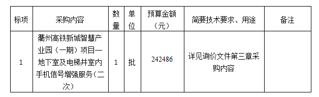 附件:衢州高鐵新城智慧產(chǎn)業(yè)園(一期)項目地下室信號增強設備采購項目(二次)