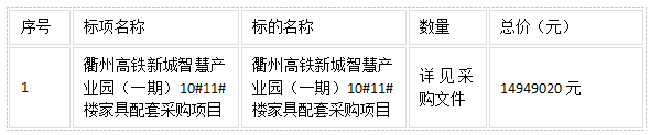 二、項目名稱:衢州高鐵新城智慧產(chǎn)業(yè)園(一期)10#11#樓家具配套采購項目