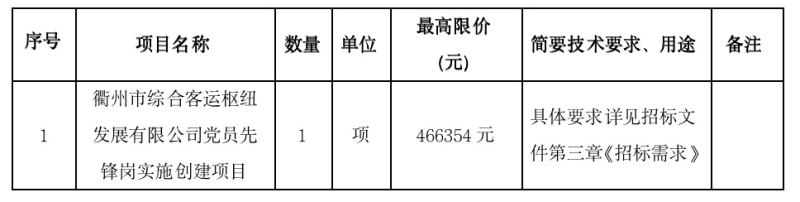 項(xiàng)目名稱:衢州市綜合客運(yùn)樞紐發(fā)展有限公司黨員先鋒崗實(shí)施創(chuàng)建項(xiàng)目