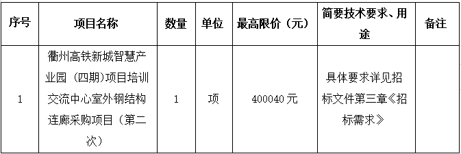 項(xiàng)目名稱:衢州高鐵新城智慧產(chǎn)業(yè)園 (四期)項(xiàng)目培訓(xùn)交流中心室外鋼結(jié)構(gòu)連廊采購(gòu)項(xiàng)目(第二次)
