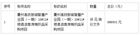 二、項(xiàng)目名稱:衢州高鐵新城智慧產(chǎn)業(yè)園(一期)10#11#樓酒店客房棉織品采購(gòu)項(xiàng)目
