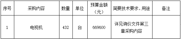 根據(jù)《衢州市國有企業(yè)采購管理辦法(試行)》規(guī)定,衢州市智信工程咨詢有限公司受衢州市智慧產(chǎn)業(yè)投資發(fā)展有限公司的委托,就衢州高鐵新城智慧產(chǎn)業(yè)園(一期)10#11#樓酒店客房電視機采購項目進行詢價,本項目為非依法必招項目,現(xiàn)請合格供應商參加投標。