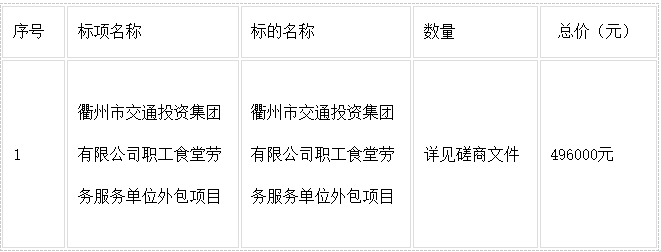 二、項目名稱:衢州市交通投資集團有限公司職工食堂勞務(wù)服務(wù)單位外包項目