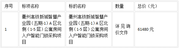 二、項(xiàng)目名稱:衢州高鐵新城智慧產(chǎn)業(yè)園(五期-1)A區(qū)北側(cè)(1-5層)公寓房間入戶智能門鎖采購(gòu)項(xiàng)目