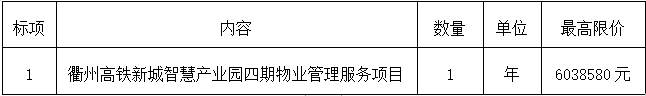 項目名稱:衢州高鐵新城智慧產(chǎn)業(yè)園四期物業(yè)管理服務(wù)項目