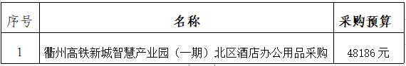 一、采購(gòu)項(xiàng)目名稱(chēng):衢州高鐵新城智慧產(chǎn)業(yè)園(一期)北區(qū)酒店辦公用品采購(gòu)。