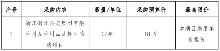 二、項目名稱:浙江衢州公交集團(tuán)有限公司辦公用品及耗材采購項目
