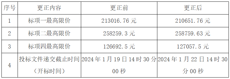 六、其它事項(xiàng):以上所有內(nèi)容以更正后為準(zhǔn),招標(biāo)文件其它內(nèi)容不變。