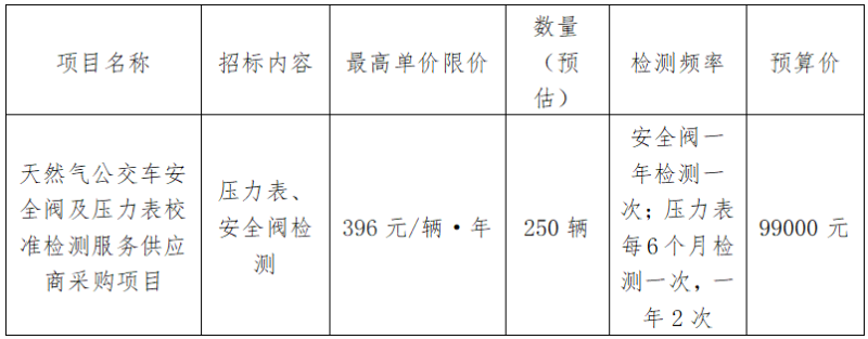 受浙江衢州公交集團(tuán)有限公司委托,現(xiàn)就天然氣公交車安全閥及壓力表校準(zhǔn)檢測(cè)服務(wù)供應(yīng)商采購(gòu)項(xiàng)目進(jìn)行采購(gòu)。本項(xiàng)目以詢價(jià)方式進(jìn)行采購(gòu),歡迎合格的供應(yīng)商參加。