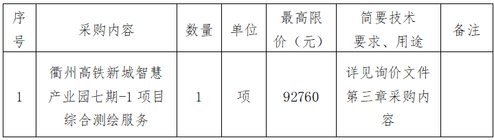 根據(jù)《衢州市國(guó)有企業(yè)采購(gòu)管理辦法(試行)》規(guī)定并參照《中華人民共和國(guó)招標(biāo)投標(biāo)法》《中華人民共和國(guó)政府采購(gòu)法》等有關(guān)規(guī)定,衢州市兩山工程咨詢管理有限公司受衢州市智慧產(chǎn)業(yè)投資發(fā)展有限公司的委托,對(duì)衢州高鐵新城智慧產(chǎn)業(yè)園七期-1項(xiàng)目綜合測(cè)繪服務(wù)進(jìn)行詢價(jià)采購(gòu),歡迎準(zhǔn)時(shí)參加。