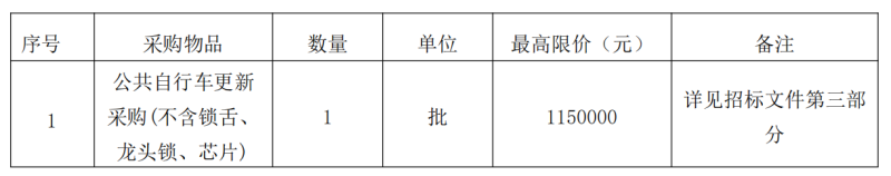 本招標(biāo)項目2019年公共自行車更新采購項目己經(jīng)批準采購,采購人為衢州通達公共自行車服務(wù)有限公司,建設(shè)資金來自財政資金,項目已具備招標(biāo)條件,現(xiàn)對2019年公共自行車更新采購項目進行公開招標(biāo),歡迎合格的供應(yīng)商參加。