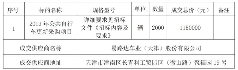 二、采購項目名稱:2019年公共自行車更新采購項目
