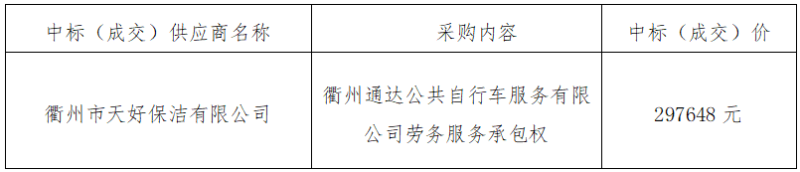 三、標(biāo)項(xiàng)名稱(chēng):衢州通達(dá)公共自行車(chē)服務(wù)有限公司勞務(wù)服務(wù)承包權(quán)項(xiàng)目