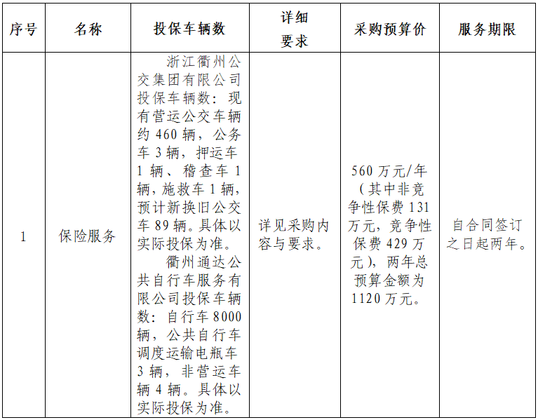 二、項(xiàng)目名稱:浙江衢州公交集團(tuán)有限公司車輛保險(xiǎn)服務(wù)采購(gòu)項(xiàng)目