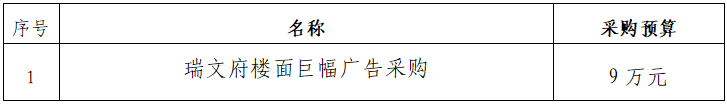 一、采購項目名稱:瑞文府樓面巨幅廣告詢價采購項目
