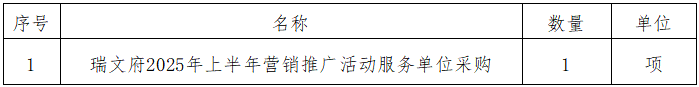 一、采購項(xiàng)目名稱:瑞文府2025年上半年?duì)I銷推廣活動(dòng)服務(wù)單位采購