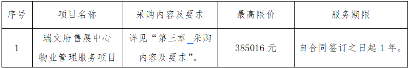 附件:瑞文府售展中心物業(yè)管理服務(wù)項目采購內(nèi)容及要求