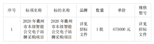 二、項目名稱:2020年衢州市本級智能公交電子站牌采購項目