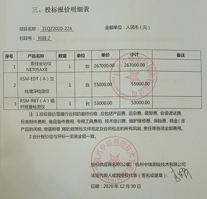 標段2中標供應商:杭州中瑞測繪技術有限公司,地點:浙江省杭州市拱墅區(qū)星尚發(fā)展大廈1幢2213室-1。