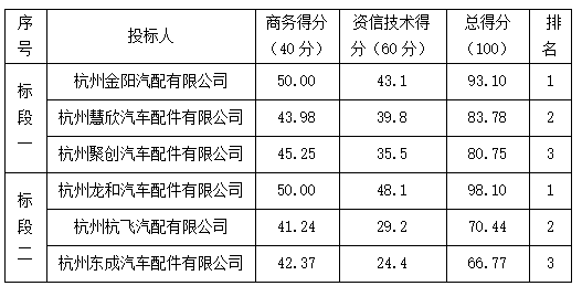 標段二中標供應(yīng)商名稱:杭州龍和汽車配件有限公司