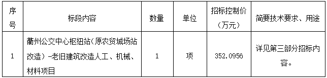 二、項(xiàng)目名稱:衢州公交中心樞紐站(原農(nóng)貿(mào)城場(chǎng)站改造)-老舊建筑改造人工、機(jī)械、材料項(xiàng)目