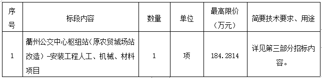 二、項目名稱:衢州公交中心樞紐站(原農(nóng)貿(mào)城場站改造)-安裝工程人工、機械、材料項目