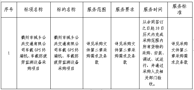 二、項(xiàng)目名稱:衢州市城鄉(xiāng)公共交通有限公司車載GPS終端機(jī)、車載防疲勞監(jiān)測(cè)設(shè)備采購項(xiàng)目