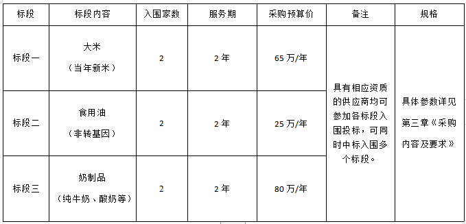 項目概況:浙江衢州公交集團有限公司就浙江衢州公交集團有限公司糧油奶制品定點采購項目,每個標項擬入圍各2家供應商,服務期二年。
