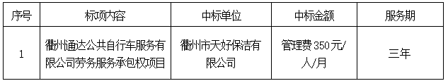 二、采購項目名稱:衢州通達公共自行車服務(wù)有限公司勞務(wù)服務(wù)承包權(quán)項目