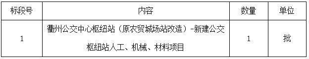 二、項目名稱:衢州公交中心樞紐站(原農(nóng)貿城場站改造)-新建公交樞紐站人工、機械、材料項目