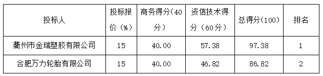 七、中標供應商名稱:衢州市金瑞塑膠有限公司
