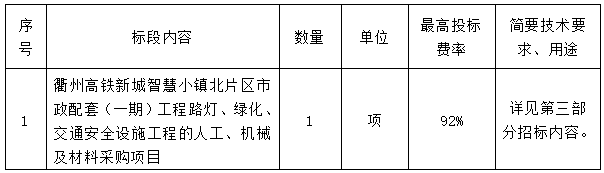 二、項目名稱:衢州高鐵新城智慧小鎮(zhèn)北片區(qū)市政配套(一期)工程路燈、綠化、交通安全設(shè)施工程的人工、機(jī)械及材料采購項目