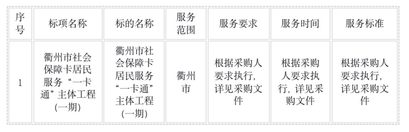 二、項目名稱:衢州市社會保障卡居民服務(wù)“一卡通”主體工程(一期)采購項目