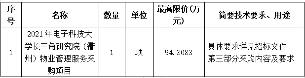 項(xiàng)目名稱(chēng):2021年電子科技大學(xué)長(zhǎng)三角研究院(衢州)物業(yè)管理服務(wù)采購(gòu)項(xiàng)目