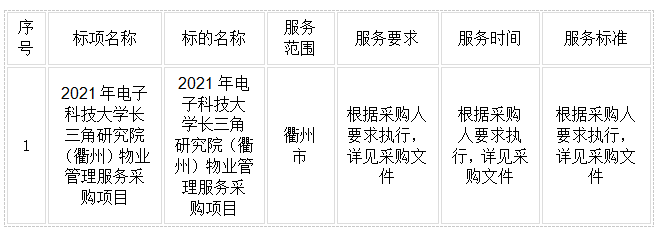 二、項目名稱:2021年電子科技大學(xué)長三角研究院(衢州)物業(yè)管理服務(wù)采購項目