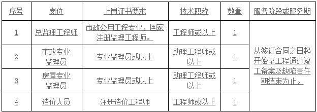 根據(jù)本項(xiàng)目特點(diǎn),招標(biāo)人提出以下監(jiān)理人員要求,投標(biāo)人應(yīng)根據(jù)本條要求配置監(jiān)理人員,并計(jì)算相應(yīng)的投標(biāo)報(bào)價(jià)。