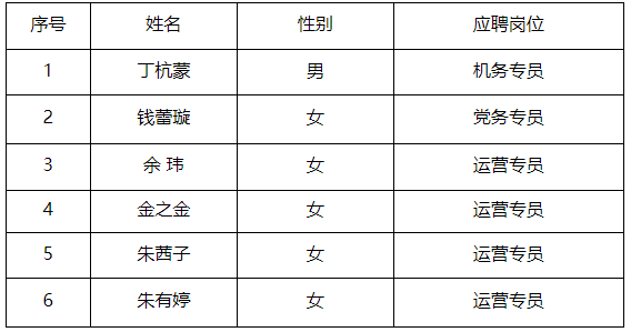 根據(jù)《浙江衢州公交集團(tuán)有限公司招聘公告》要求,現(xiàn)將擬錄用人員名單公示如下: