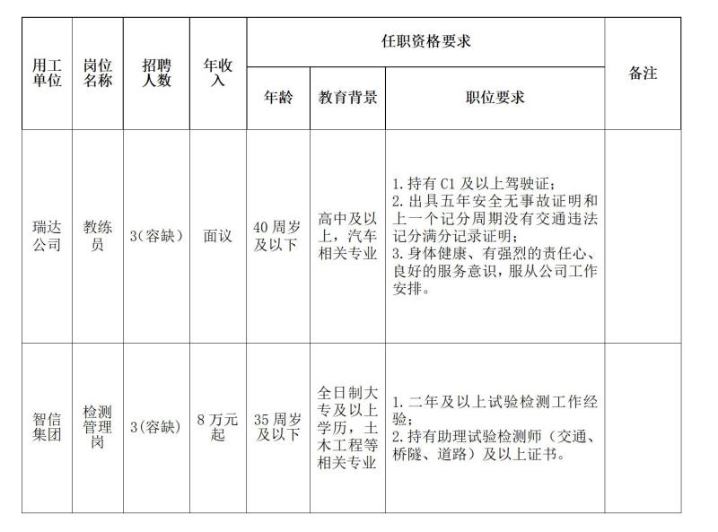 本次計劃招聘6名勞務(wù)派遣人員,其中教練員3名、檢測管理崗3名。