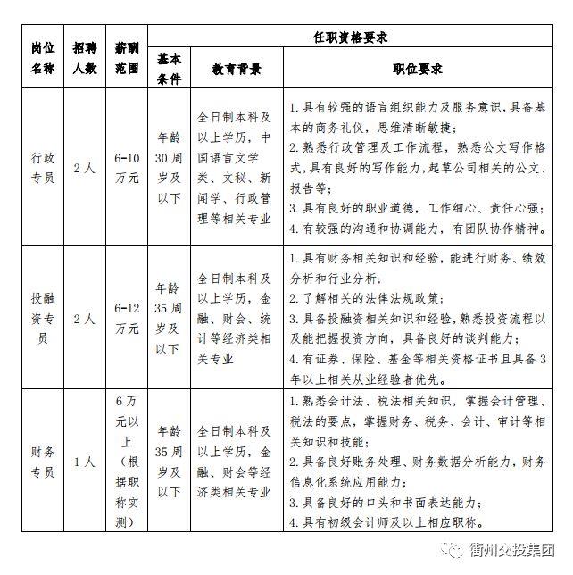 (一)衢州市交通投資集團有限公司招聘崗位與人數見下表: