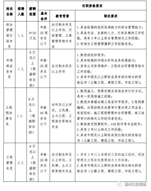 (二)下屬子公司浙江衢交建設工程有限公司招聘崗位與人數見下表: