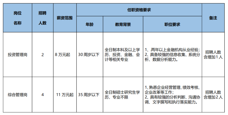 根據(jù)集團發(fā)展需要,經(jīng)研究決定,對部分崗位招聘要求、招聘人數(shù)等事項進行調(diào)整,并對調(diào)整崗位報名時間進行延長。具體內(nèi)容公告如下: