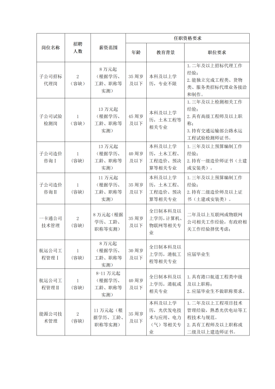現因集團發(fā)展需要,委托衢州市慧城人才開發(fā)有限公司(以下簡稱慧城人才公司)面向社會公開招聘21名工作人員,具體工作單位由集團根據工作需要,在集團本部和下屬子公司之間統(tǒng)籌安排。具體招聘事項公告如下: